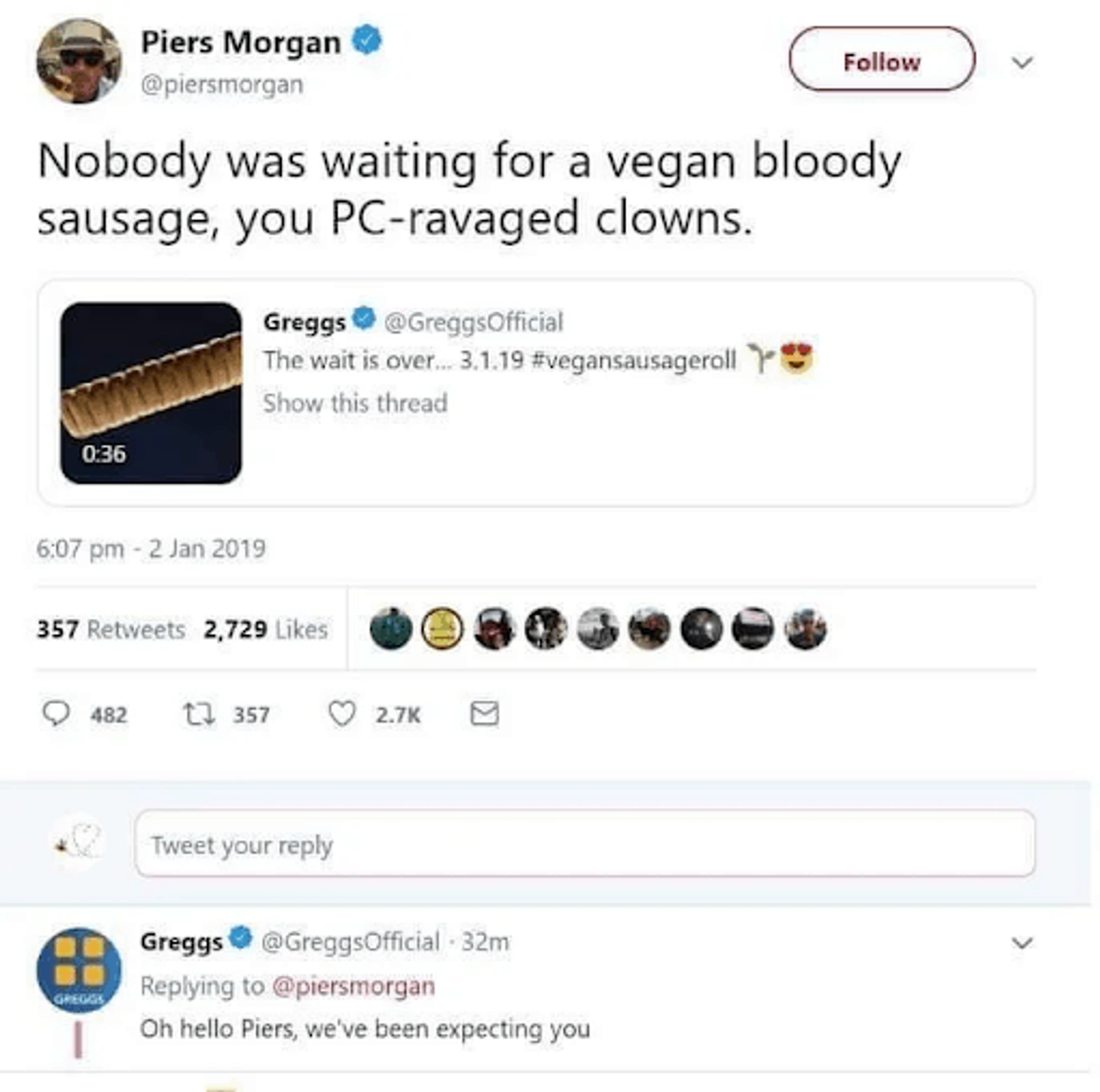 Incongruous with M&S’s luxe take on marketing, the Love Sausage didn’t fit with the brand’s usual tone of voice. However it worked! Selling out in many stores within minutes and bringing a new pun-loving consumer through the doors. Similarly, when Greggs launched its vegan sausage roll in January it gained a cult following amongst a new group of more conscious consumers. (The ones who only ever indulged in the pastry chain when they were really hungover). Therefore PR strategy hit the nail on the head, creating a fan club of journalists who lapped up their sausage roll phone cases and Greggs Christmas jumpers. In turn, ensuring the coverage spanned from Wales Online to Vice. And it even achieved 2019’s ultimate KPI: it pissed off Piers Morgan.